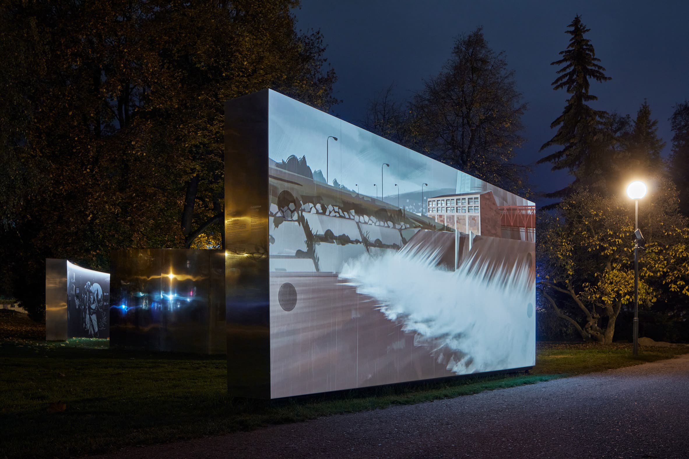 The multimedia exhibition Mirrors of Zlín reflects the 700-year-old history of Zlín. The first thing we see is a distinctive view of the development of the city and its surroundings by Pavel Kosatík, which we enhanced by adding some drawings.