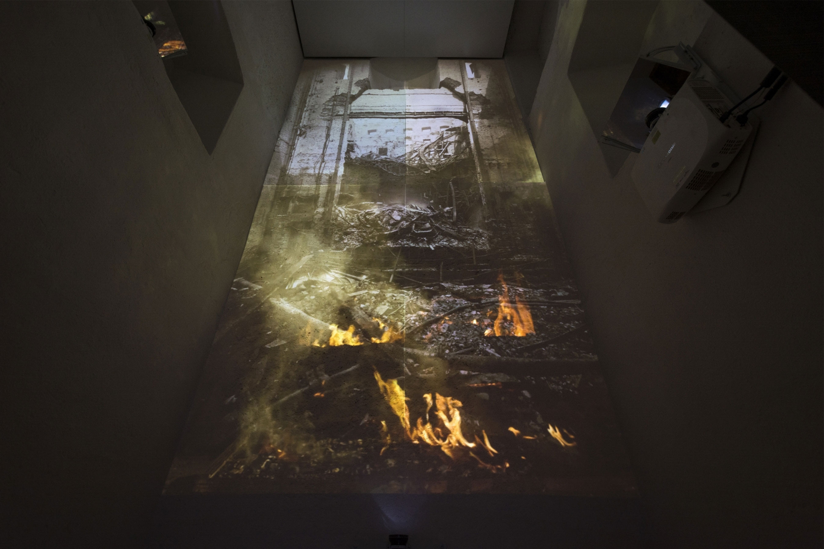 Fire and water. Two elements that are constant conflict. Elements that are both fascinating and terrifying at the same time. The core of the exhibition is the vertical sequence of the rooms in the old gothic water tower on the Vltava river bank. This space used to be a shaft but is now wrapped in a spiral staircase which is the entrance and the exit of the exhibition.