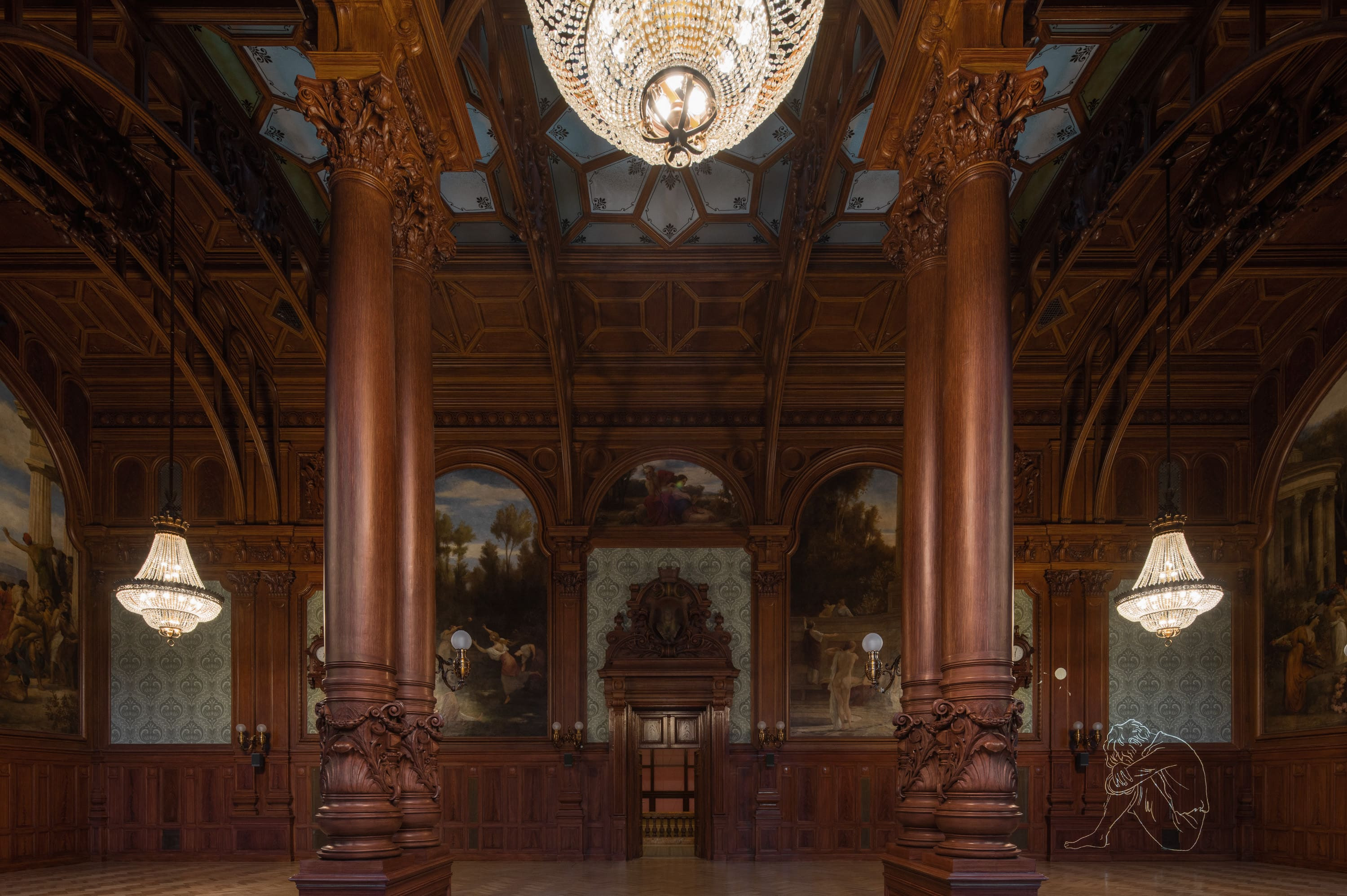 In the WORLD OF PERSONALITIES, we have revived the preserved bathrooms with ephemeral immersive projections that depict the significant figures of the Imperial Baths in symbolic situations. These situations define the personalities through simple gestures while also showing them during various spa procedures. Each illusion, through image, light, and sound, represents the ethos of the time and is unique in its presentation—from delicate scenes to more expressive images.
