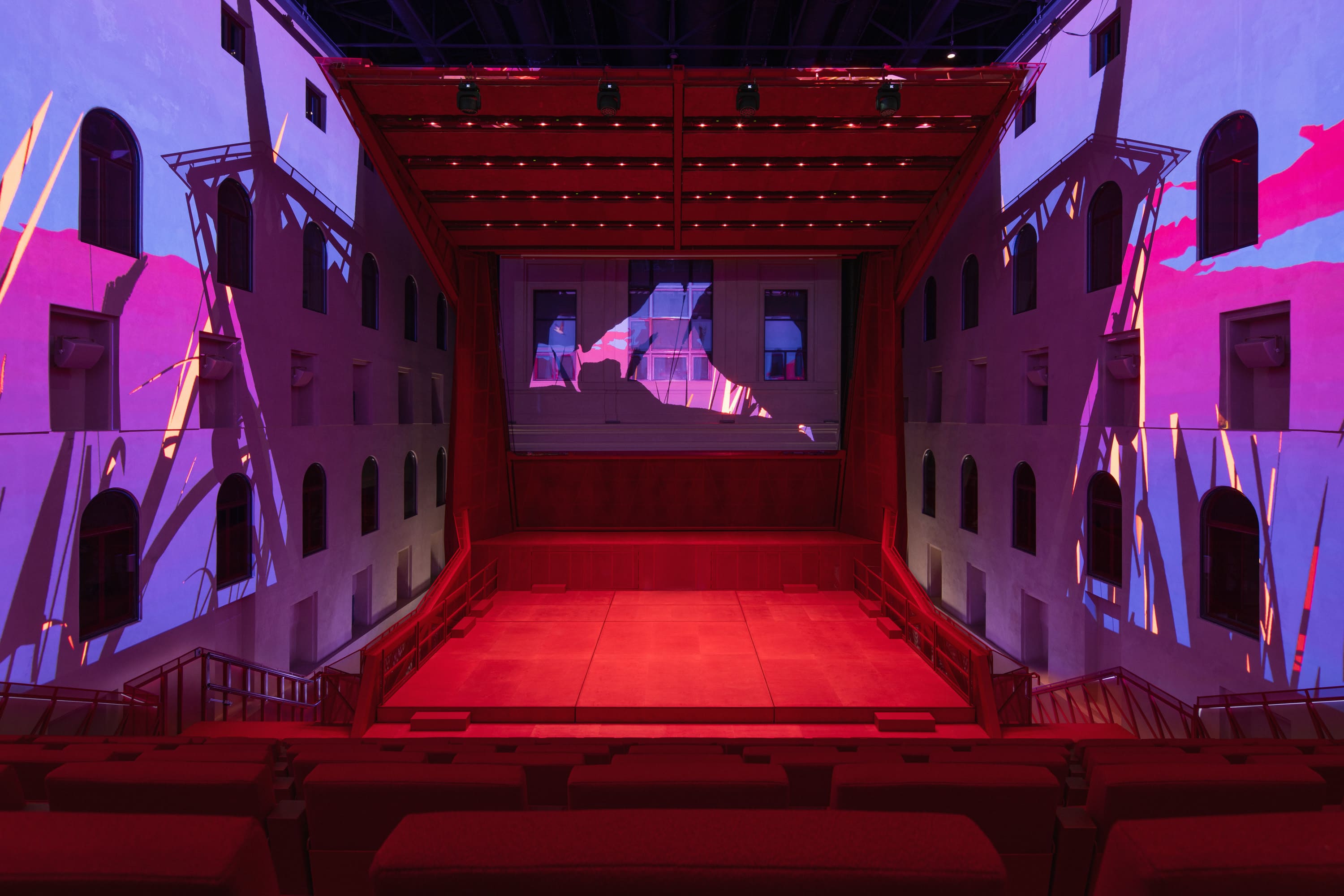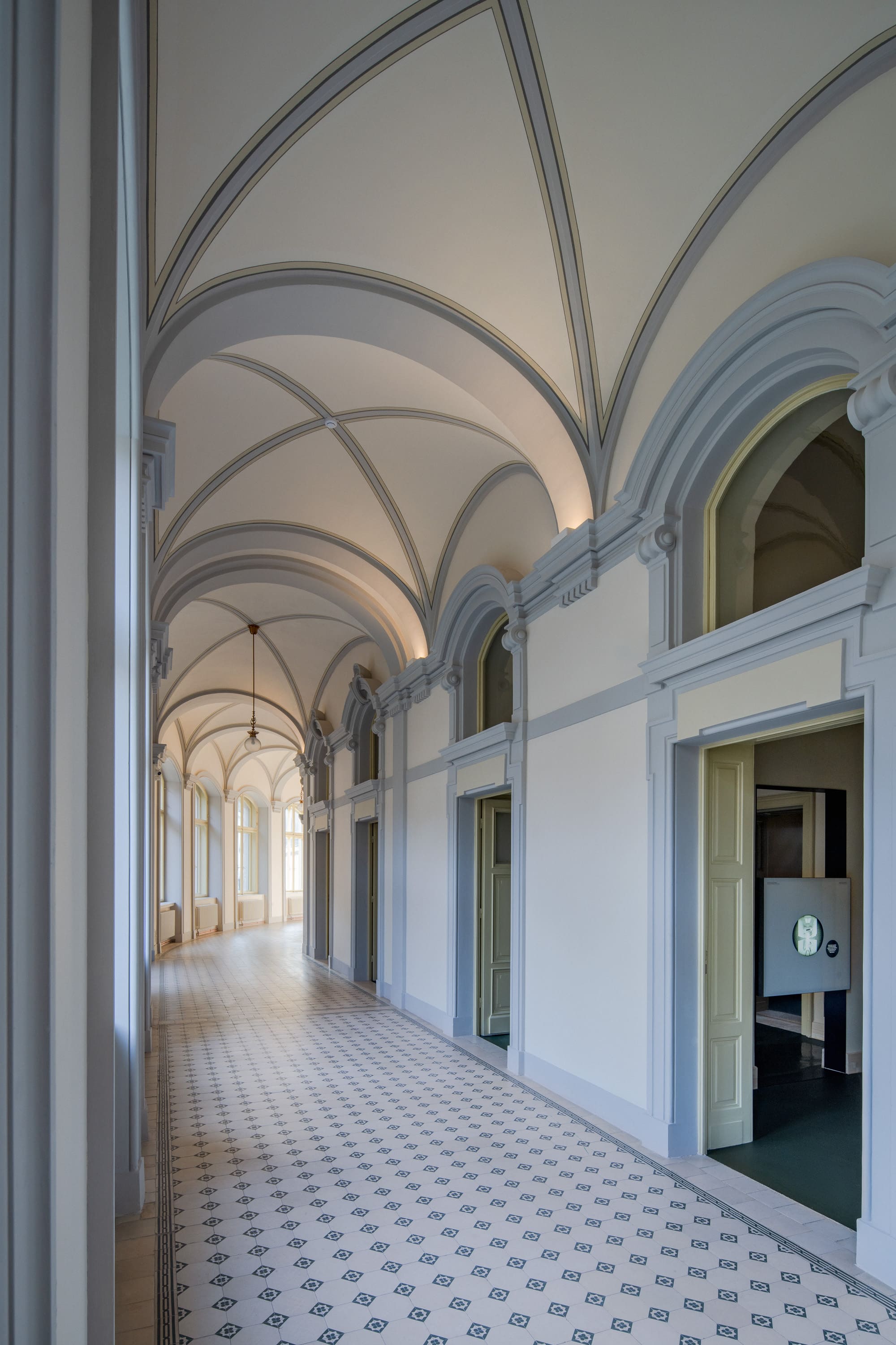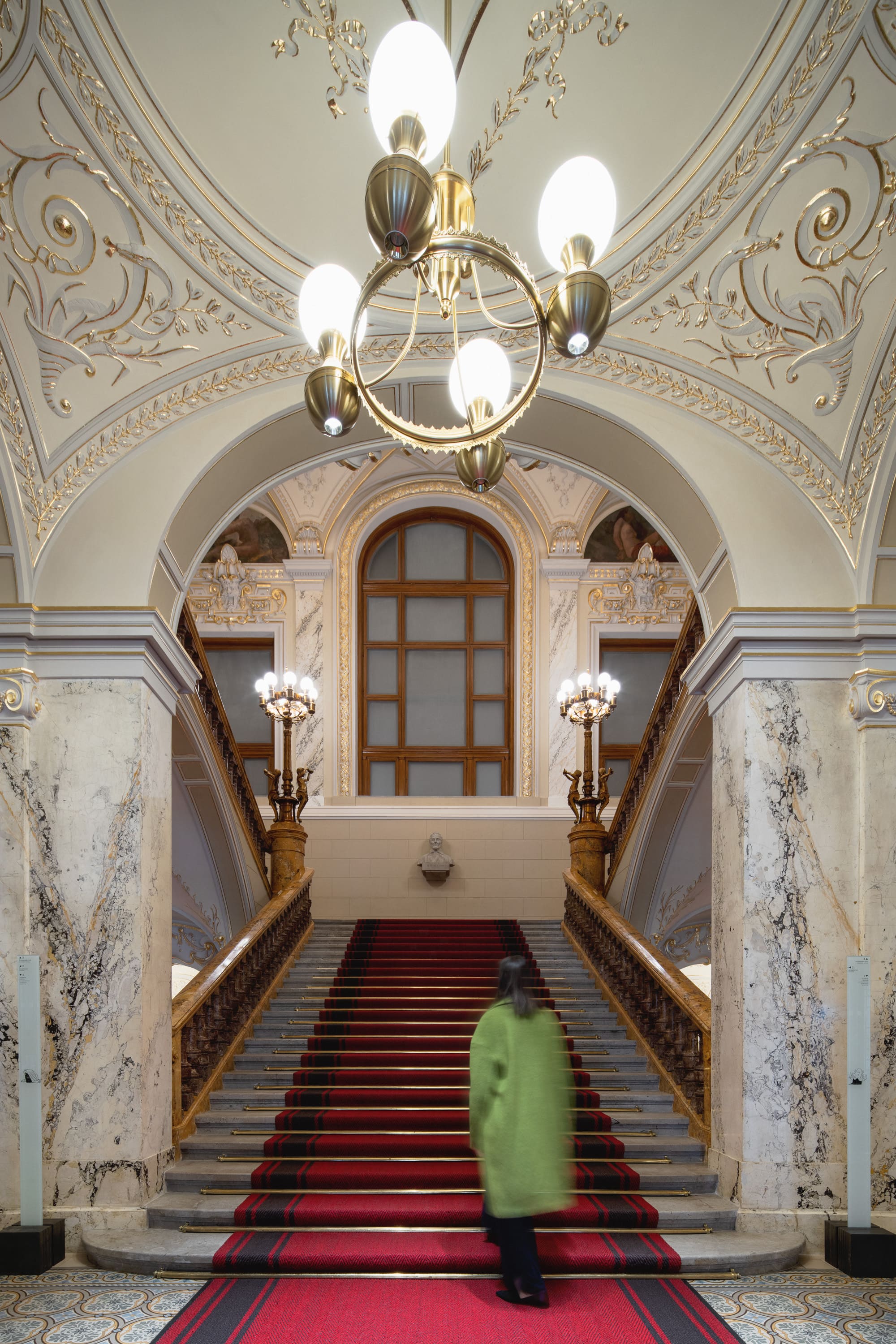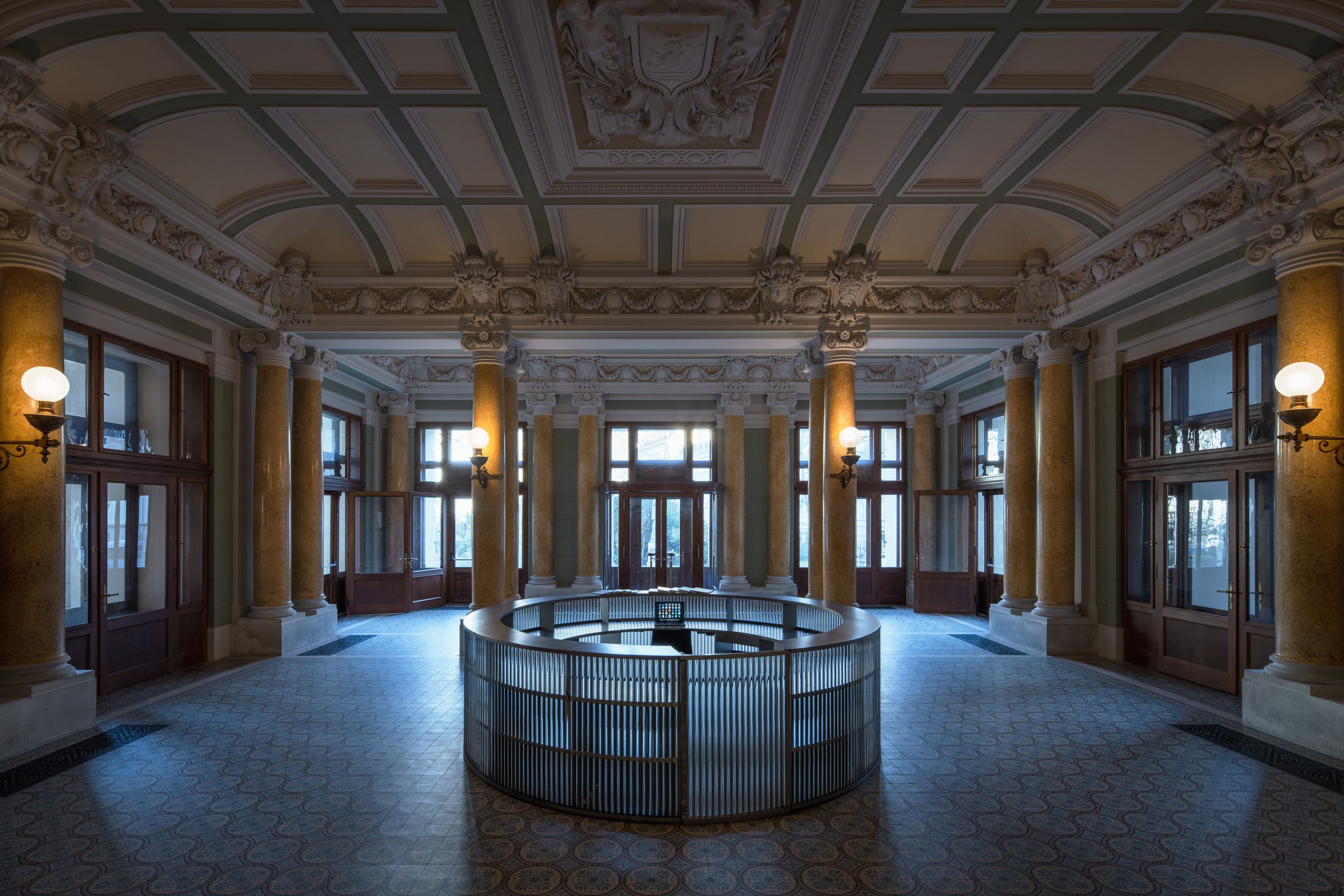 The material and aesthetic design of the exhibition was chosen with the utmost respect for the Imperial Baths building. We present history to the viewers primarily through illusions, reflections, and light across all levels of multimedia content.