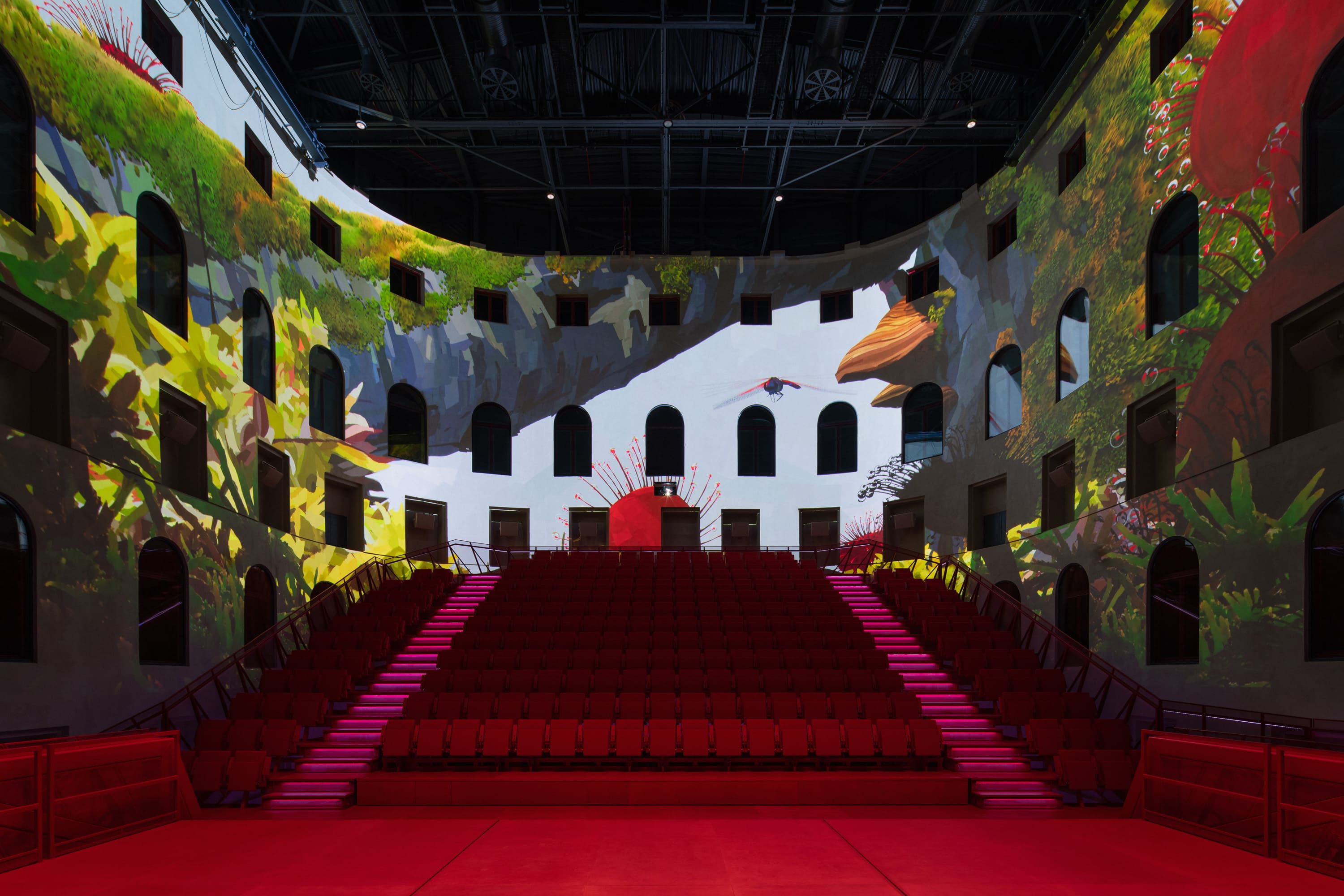 The exhibition "Three Worlds" captures the spirit of the 20th century against the backdrop of the evolution of spa culture. The monumental space of the atrium reveals the life of nature and technology. A panoramic projection brings viewers closer to the macro-world of the peat bogs in the Karlovy Vary region and the processes that shaped them. Restored bathrooms uncover the history of spa culture in a global context. Hand-drawn animations explore traditional cradles of civilization while simultaneously telling the story of the Imperial Baths. The bathrooms, restored to their original form, are once again inhabited by prominent figures. Illusory digital paintings use images, light, and sound to represent the era's context.