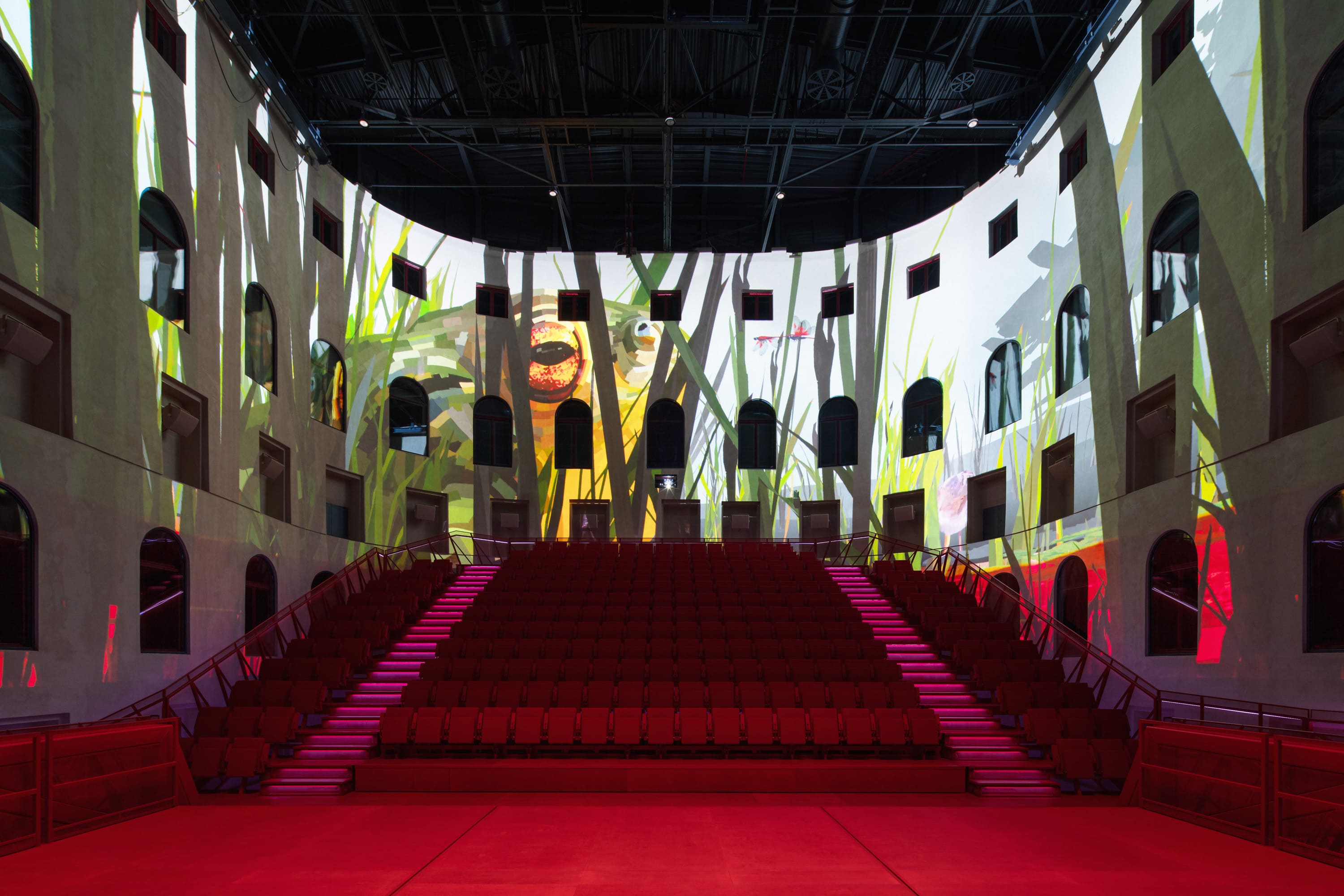 In the WORLD OF MACRO-NATURE, we explore the natural resources of the region, the formation of peat, and the unique biodiversity associated with it. The immersive projection allows viewers to travel through different scales, speeds, and worlds. One moment, we observe workers harvesting peat; moments later, we journey through the world of mammals, small insects, or aquatic algae. The visitor thus discovers the diverse flora and fauna of the Slavkov Forest.